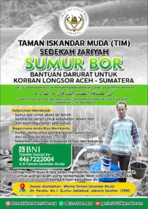 Selain itu, PPTIM juga membangun sejumlah sumur bor di berbagai lokasi terdampak parah bencana di Aceh. Hingga saat ini, TIM masih membuka kesempatan kepada siapa saja yang mau menyedahkan donasi pembangunan sumur bor maupun membantu dalam bentuk uang maupun barang kepada para korban.