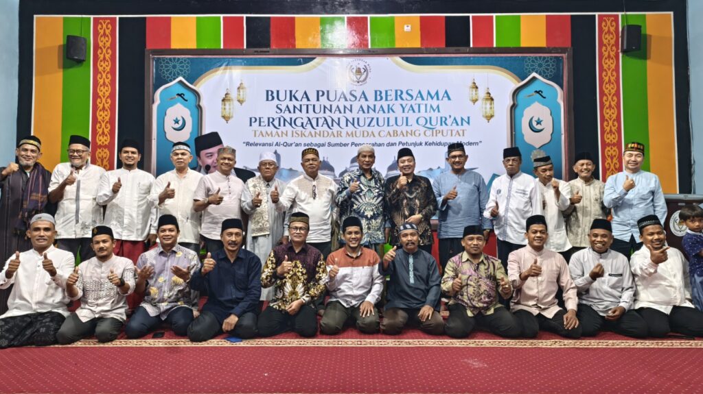 Ciputat — Taman Iskandar Muda (TIM) Cabang Ciputat menyelenggarakan buka puasa bersama, santunan anak yatim, serta peringatan Nuzulul Qur’an 1447 Hijriah, Jumat, 6 Maret 2026. Kegiatan berlangsung di Gedung Meunasah Fatahillah, Ciputat, Kota Tangerang Selatan, dalam suasana khidmat dan penuh kebersamaan.